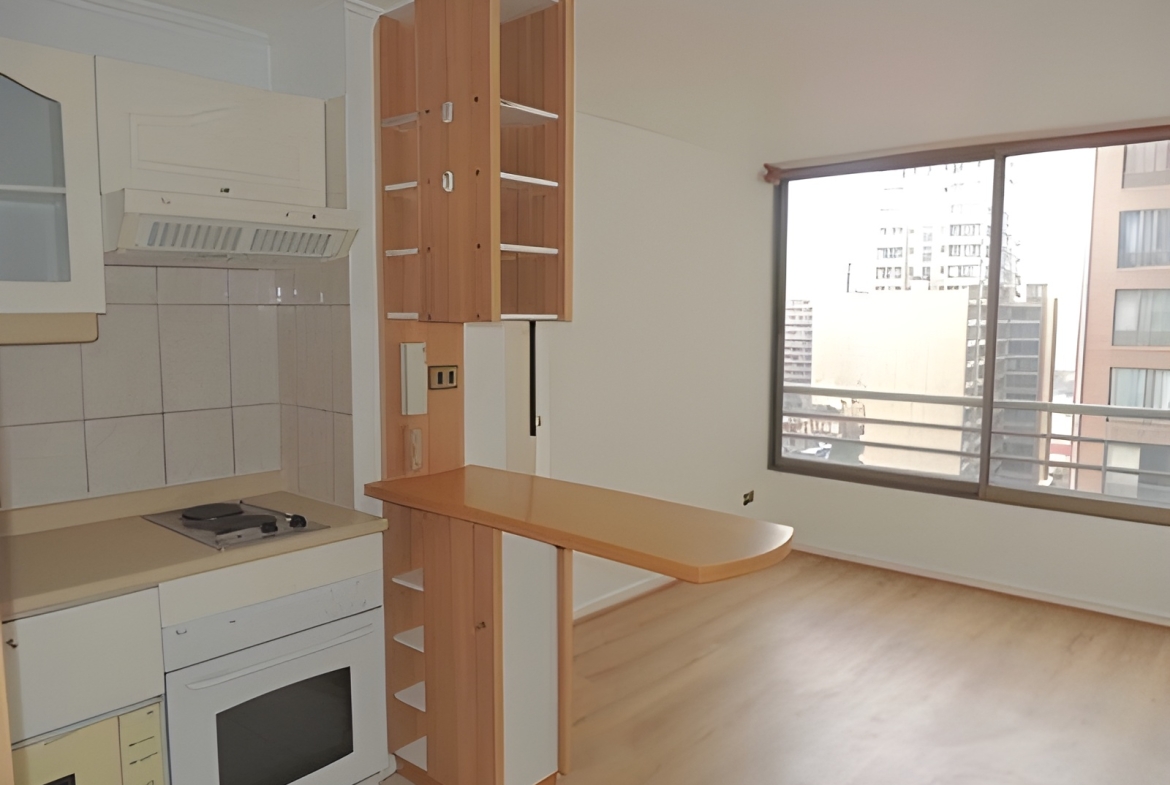 Acogedor e impecable departamento, 1 dormitorio, baño en suite, living-comedor, cocina americana, amoblada y equipada con encimera dos platos, horno empotrado, campana. Gastos comunes $38.000.- aprox. Ubicado en San Isidro 154, Depto. 1318-B, Santiago. Tradicional y residencial barrio Santa Lucia. Se ubica a 300 mts. De estación Metro Santa Lucia. El edificio cuenta con acceso controlado las 24 horas, sala gimnasio, sala multiuso, quinchos, piscina en terraza superior, lavandería, patio de luz central, áreas vedes que conecta las torres A y B. Requisitos conversables No se requiere renta mínima. Disponibilidad Inmediata.